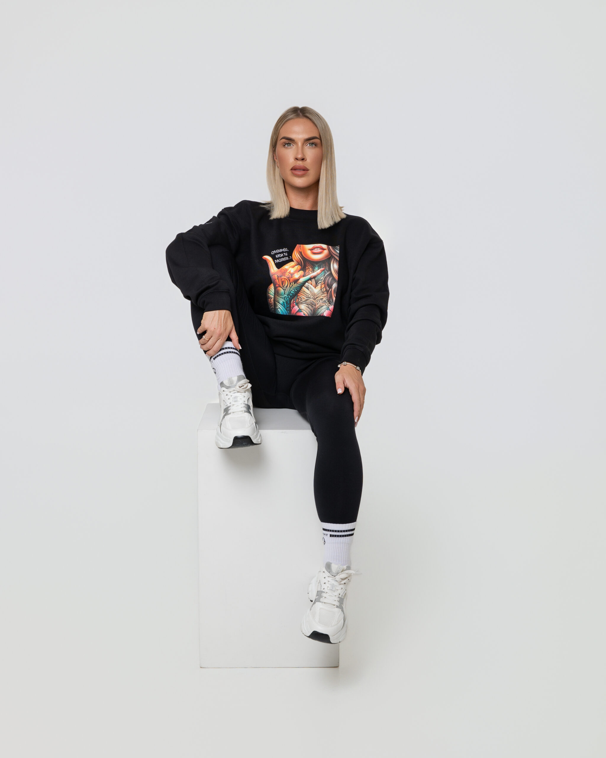 Džemperis „Išsiburkim” su akį traukiančiu printu.