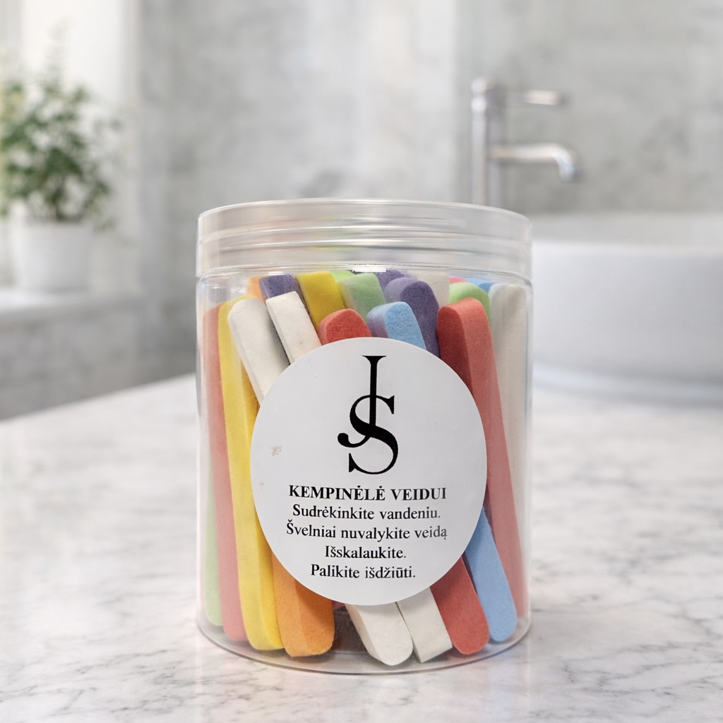 Kiekviena kempinėlė tinka keliems naudojimo kartams – po naudojimo tereikia ją išskalauti ir palikti išdžiūti.