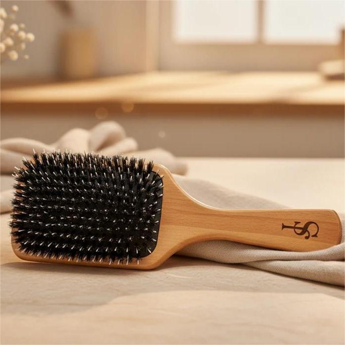 Premium klasės plaukų šepetys, skirtas švelniam šukavimui, natūraliam plaukų blizgesiui ir galvos odos komfortui.