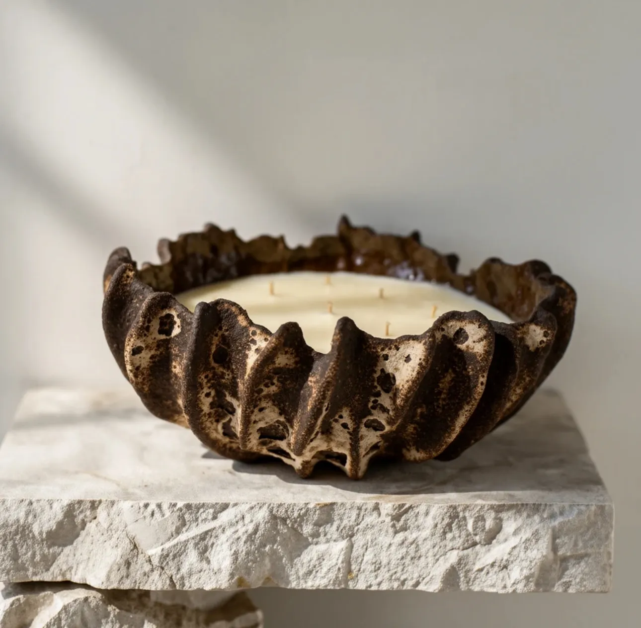 Rankų darbo keramikinis indas – unikalios formos, masyvus, prabangus, tinkantis kaip interjero akcentas net ir užgesus žvakei.