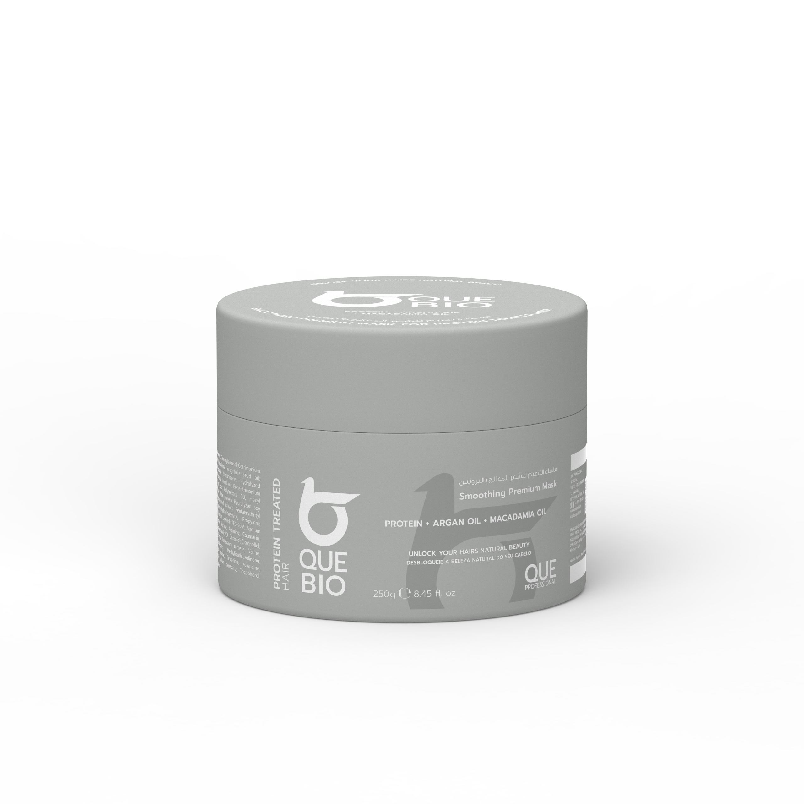 QUE BIO Smoothing Premium Hair Mask – Plaukų atstatomoji kaukė su baltymais, argano ir makadamijos aliejais