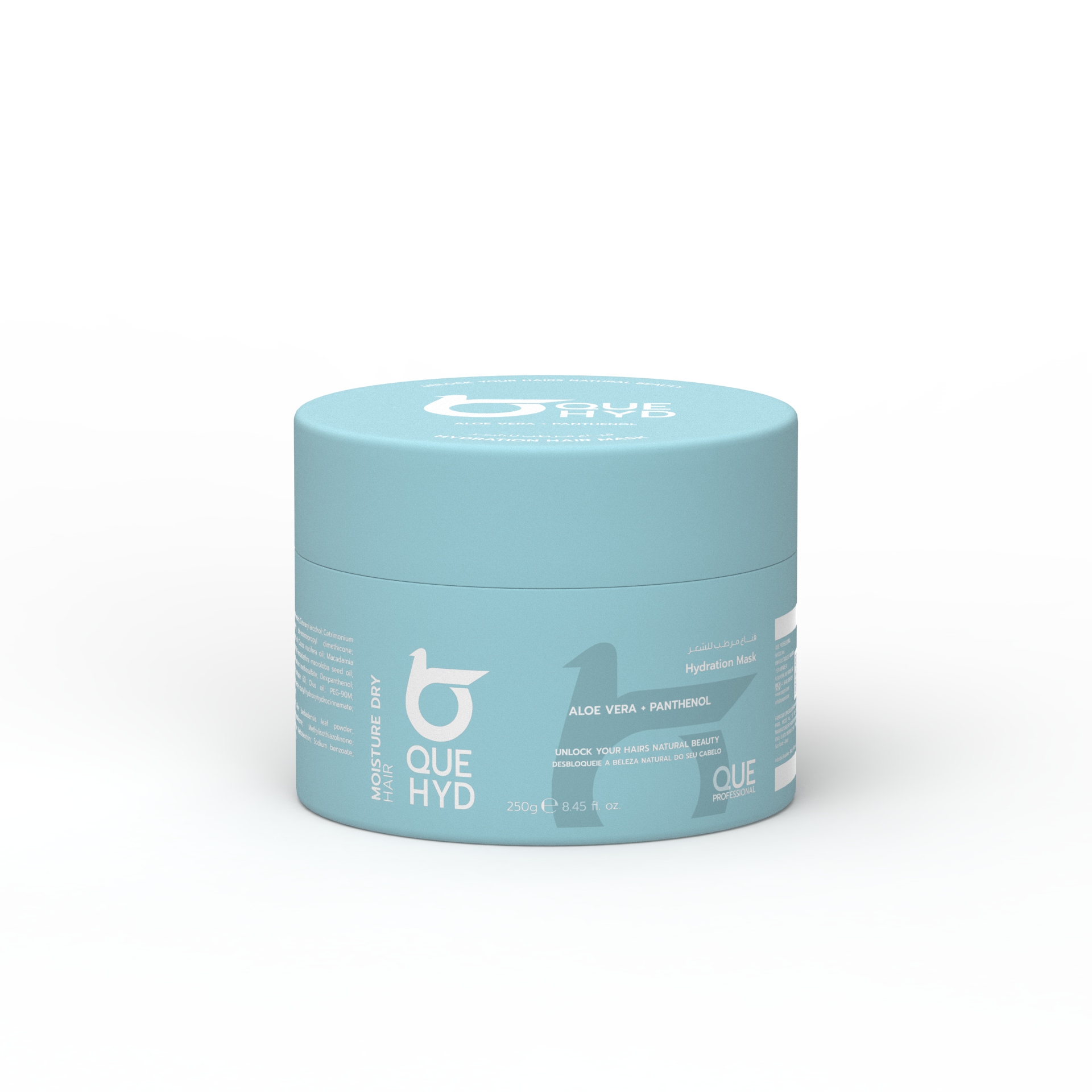 QUE HYD Hydration Hair Mask – Drėkinamoji plaukų kaukė su Aloe Vera ir Panthenol