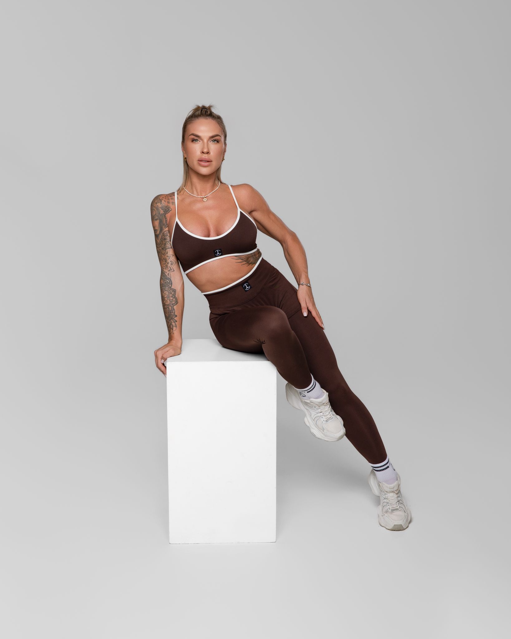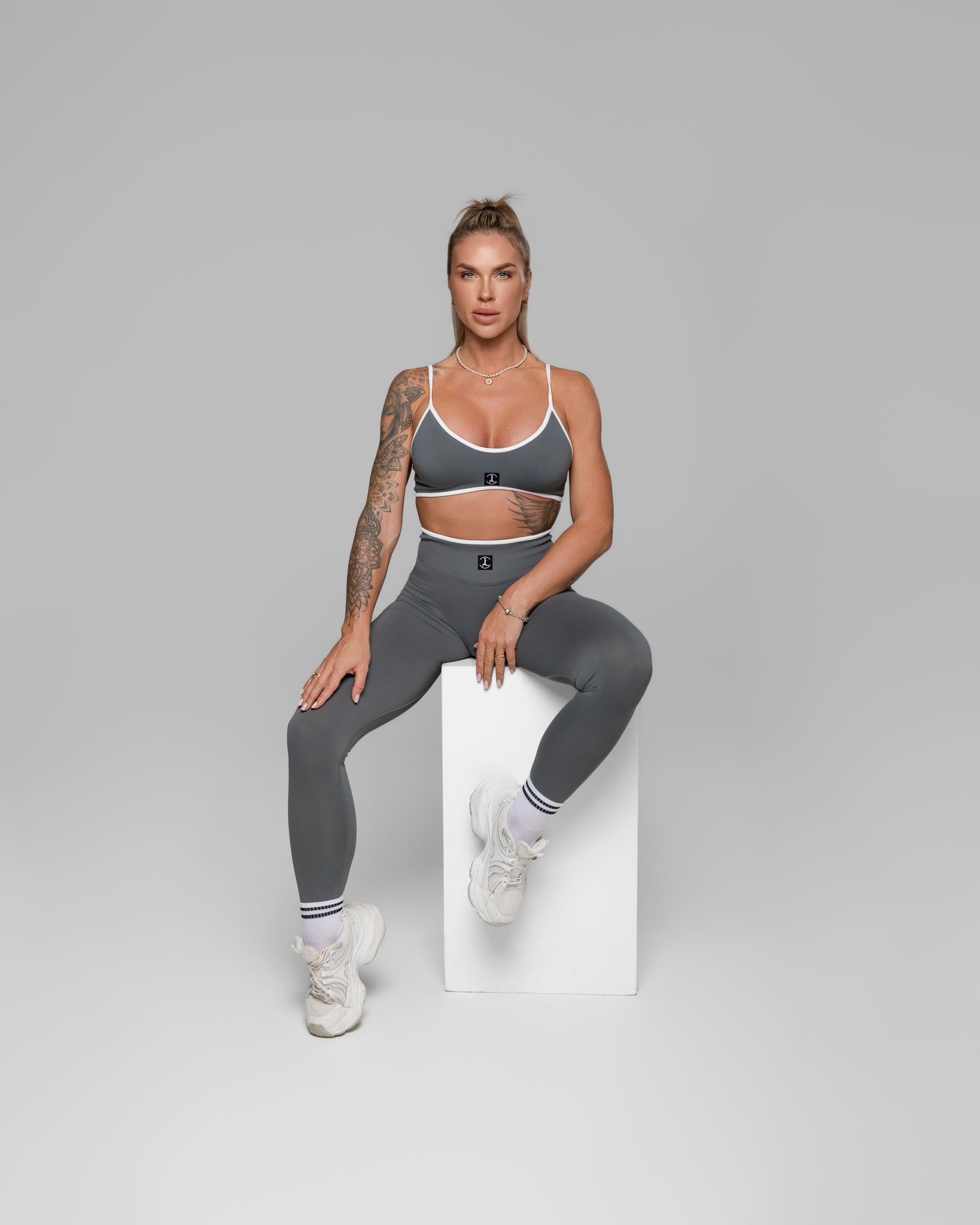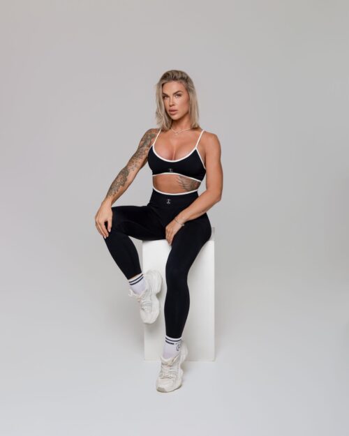 Stilingas ir funkcionalus sportinis komplektas, sukurtas toms, kurios nori jaustis tvirtai, patogiai ir užtikrintai. Standi, elastinga medžiaga gražiai priglunda prie kūno, suteikia atramą ir padeda išlaikyti formą treniruočių metu. Formuojančios tamprės vizualiai dailina siluetą, nevaržo judesių ir puikiai tinka tiek sporto salei, tiek aktyviai kasdienai.