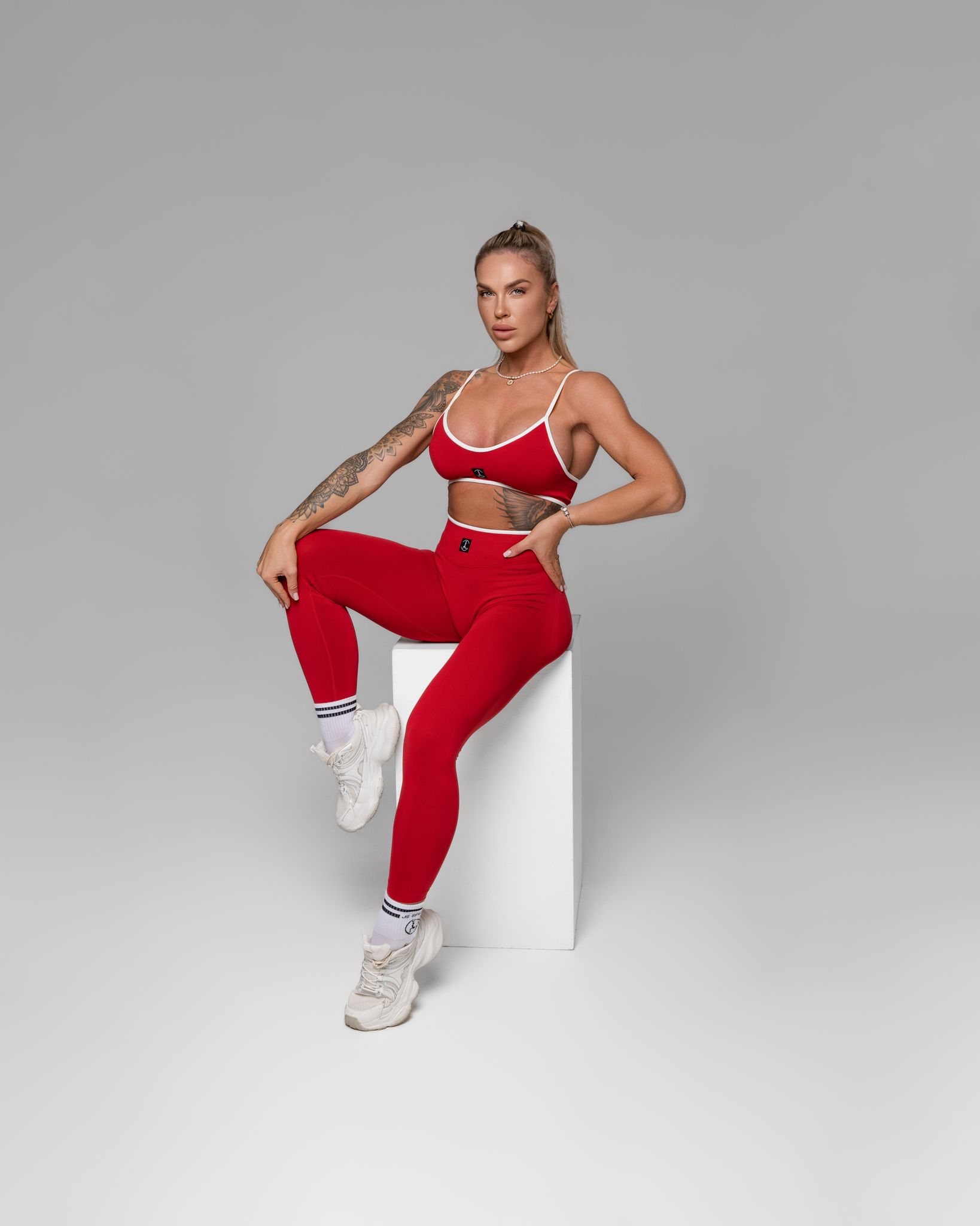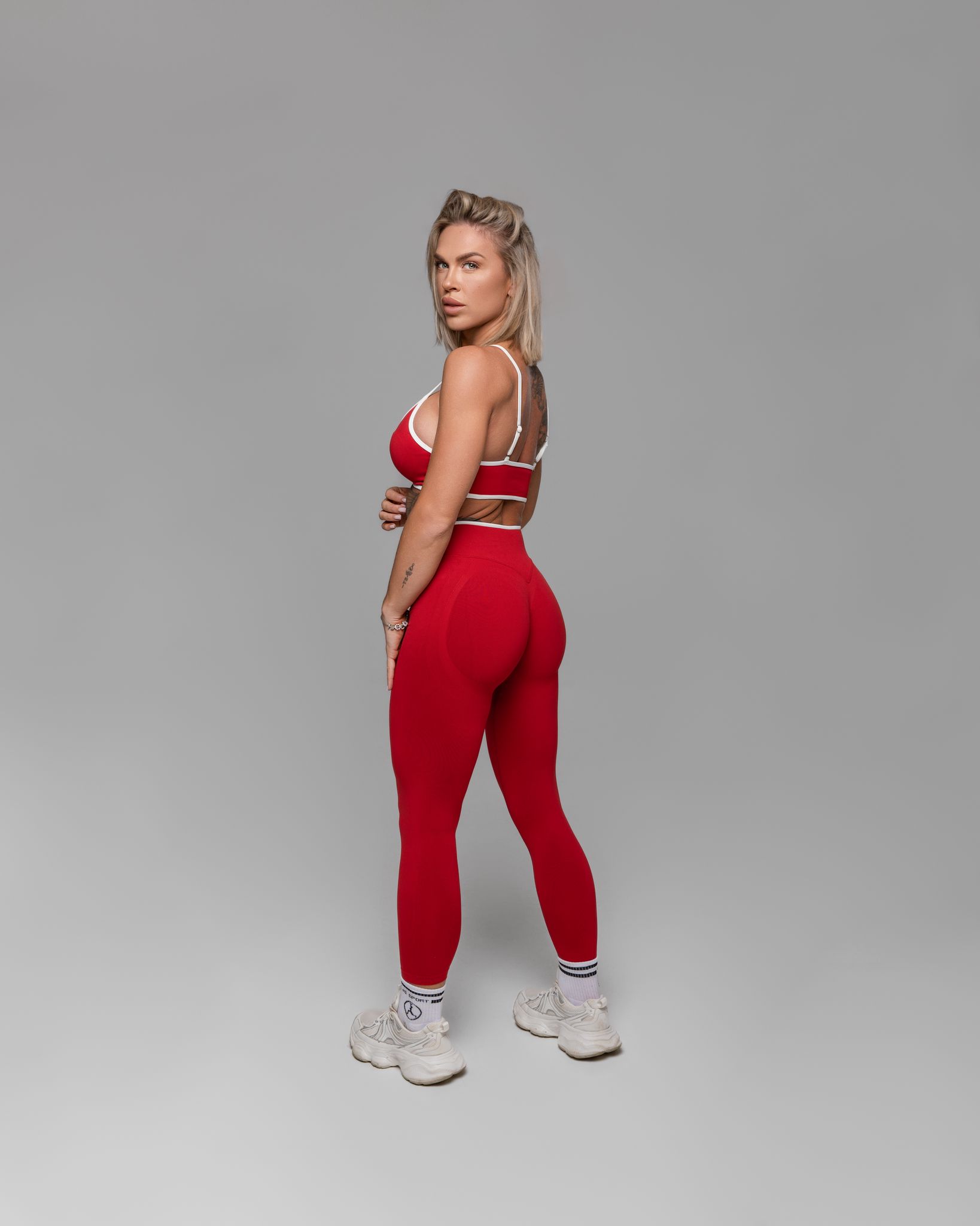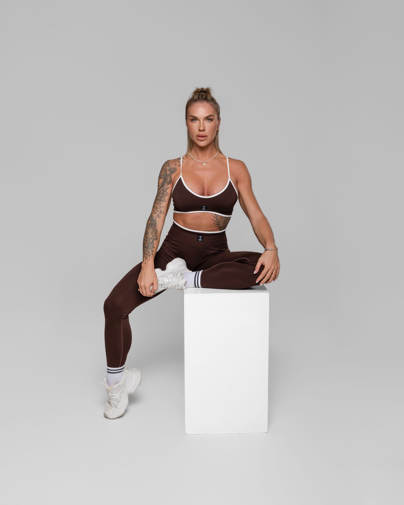 Stilingas ir funkcionalus sportinis komplektas, sukurtas toms, kurios nori jaustis tvirtai, patogiai ir užtikrintai. Standi, elastinga medžiaga gražiai priglunda prie kūno, suteikia atramą ir padeda išlaikyti formą treniruočių metu. Formuojančios tamprės vizualiai dailina siluetą, nevaržo judesių ir puikiai tinka tiek sporto salei, tiek aktyviai kasdienai.
